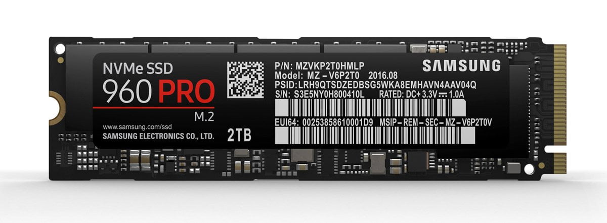 SSD-ul 960 PRO este cel mai rapid model M.2 NVMe în momentul actual, fiind disponibil în varianta cu capacitate de 2TB, cea mai mare capacitate de stocare a modelelor M.2 NVMe pentru utilizatorii finali, precum şi în alte versiuni cu capacitate de 512GB şi 1TB. Modelul 960 PRO este rezistent, având o garanţie de cinci ani sau până la 1,2 petabytes scrişi (PBW), pentru modelul cu capacitate de 2TB.