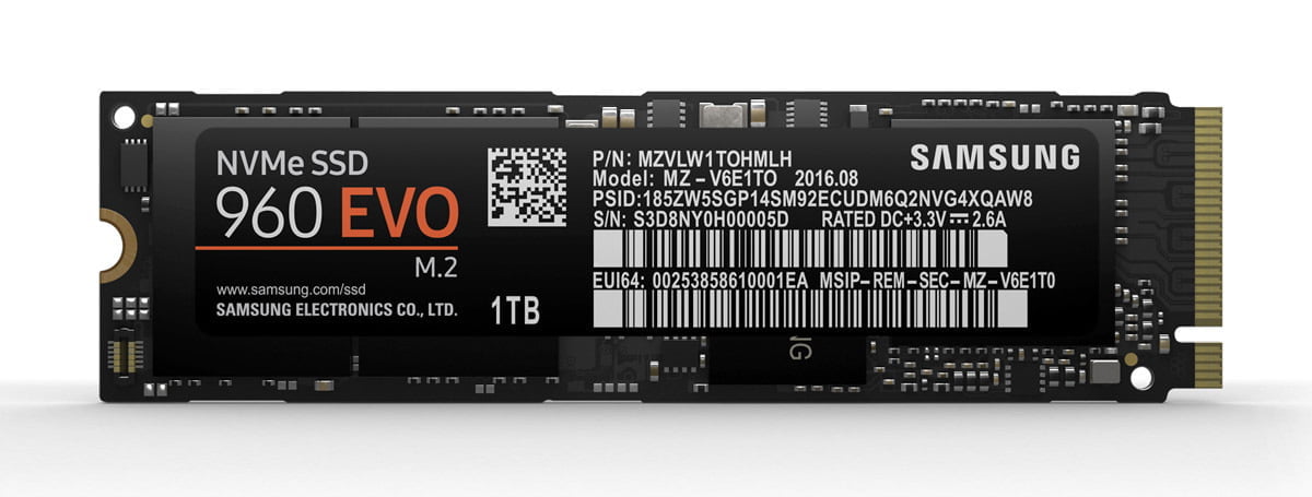 Modelul 960 EVO este disponibil în versiunile de 250GB, 500GB şi 1TB capacitate de stocare şi le oferă utilizatorilor performanţă de ultimă generaţie. Tehnologia Samsung Intelligent TurboWrite debutează pe modelul 960 EVO şi accelerează viteza de citire şi scriere secvenţială, atingând valori de până la 3.200 MB/s, respectiv 1.900 MB/s. Viteza de citire aleatorie a SSD-ului 960 EVO ajunge până la 380.000 IOPS, iar viteza aleatorie de scriere până la 360.000 IOPS.6 Modelul 960 EVO are o garanţie de trei ani sau până la 400 TB scrişi (TBW), pentru modelul cu capacitate de stocare de 1TB.